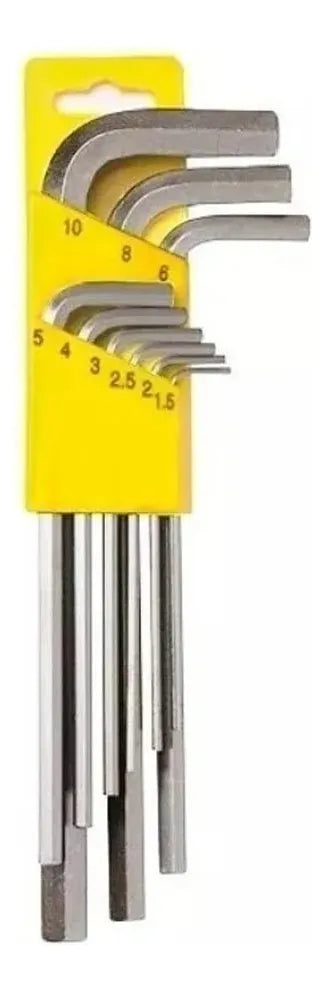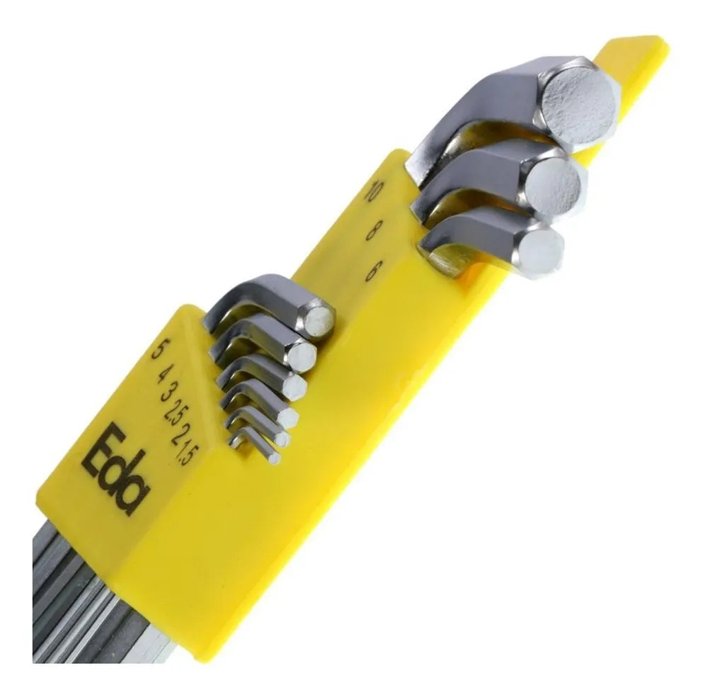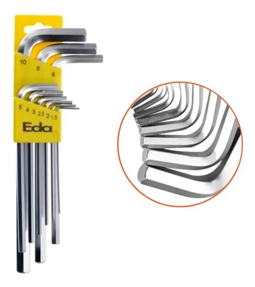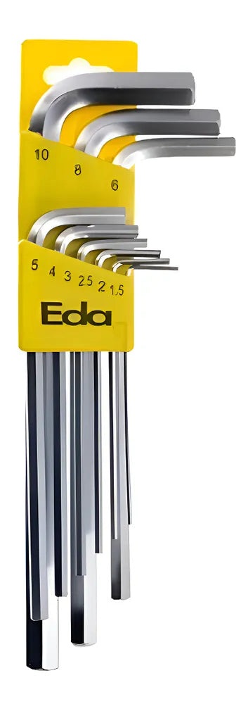 Este conjunto de chaves Allen da marca Eda, modelo 9GC, é uma ferramenta essencial para qualquer caixa de ferramentas. Composto por 9 peças, cada uma com um tamanho diferente, variando de 1,5mm a 10mm, este conjunto é perfeito para uma variedade de tarefas. As chaves são feitas de cromo vanadium, um material conhecido pela sua resistência e durabilidade, e passam por um tratamento térmico para aumentar ainda mais a sua resistência. Além disso, o acabamento cromado das chaves não só lhes dá um aspecto elegante, como também ajuda a prevenir a corrosão, prolongando a vida útil das chaves. A cor prateada das chaves adiciona um toque de sofisticação, tornando-as não só funcionais, mas também esteticamente agradáveis. Com um peso total de 362 gramas, este conjunto de chaves é leve o suficiente para ser facilmente transportado, mas robusto o suficiente para lidar com qualquer tarefa. Seja para apertar ou soltar parafusos com cabeça sextavada, este conjunto de chaves Allen é a escolha perfeita.