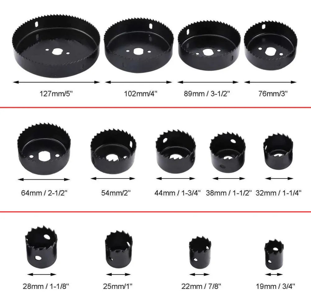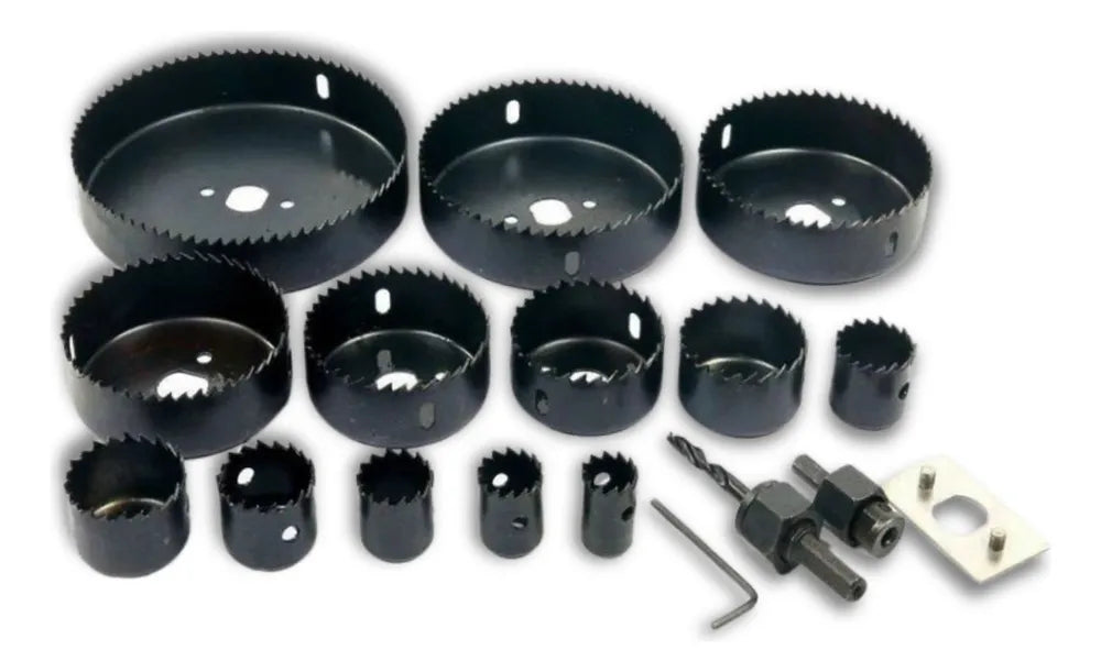 Conjunto de serras copo é ideal para fazer furos em gesso, pvc e madeira para passar cabos e outras aplicações.