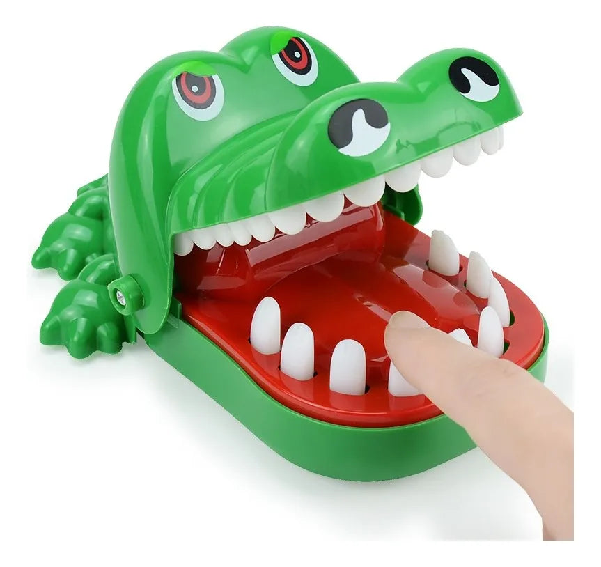 Um brinquedo simples e divertido, ideal para brincar com amigos e familiares. Teste seu tipo escolhendo um dos dentes do crocodilo e veja se ele morde! Quem escapa da mordida continua no jogo, até sobrar apenas um vencedor.