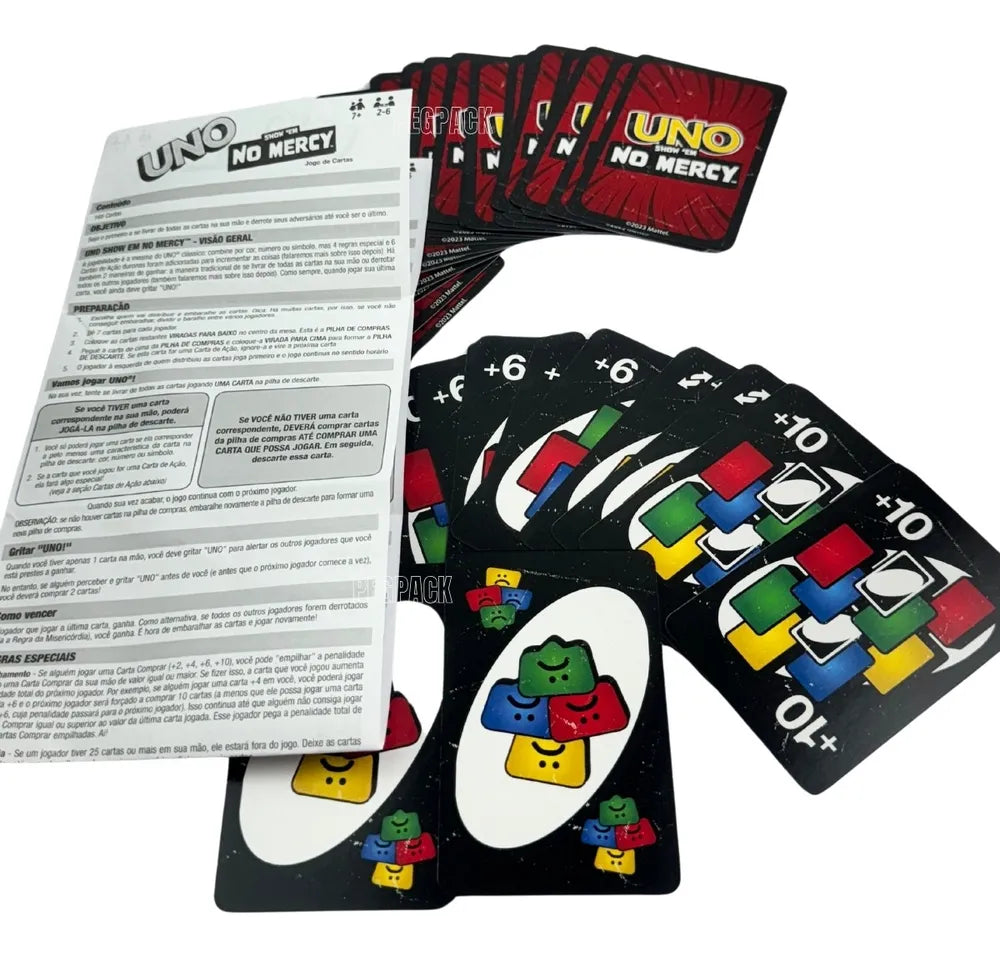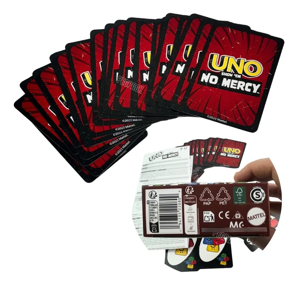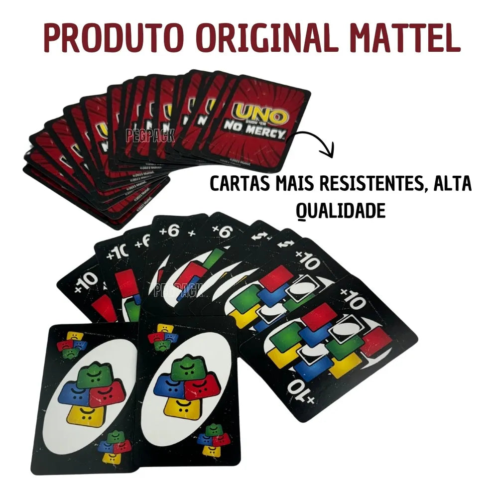 O Jogo de Cartas Uno Edição Especial No Mercy Original Mattel é uma excelente adição para qualquer coleção de jogos, oferecendo uma mistura perfeita de diversão, estratégia e competição. Não perca a chance de experimentar esta versão inovadora do Uno!
