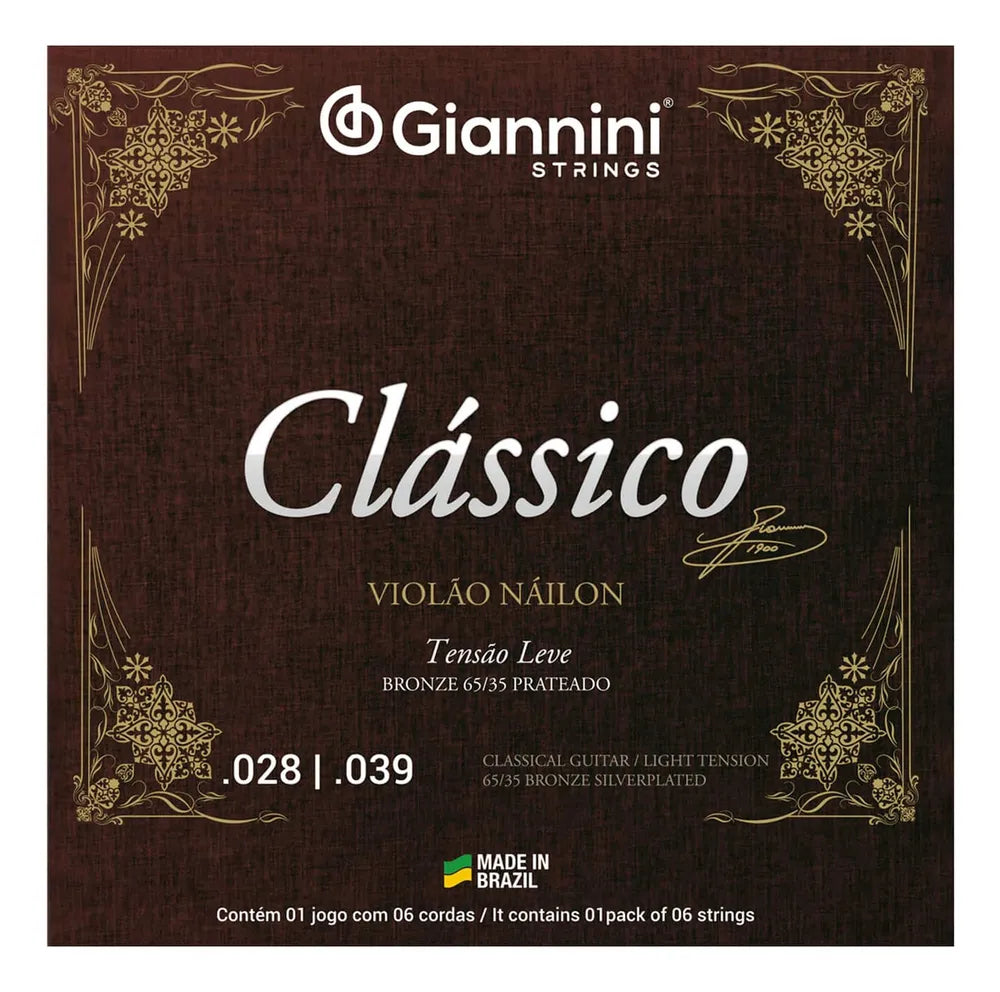 Encordoamento para Violão Náilon 6 cordas Giannini Clássico Bronze 65/35 GENWPL Leve