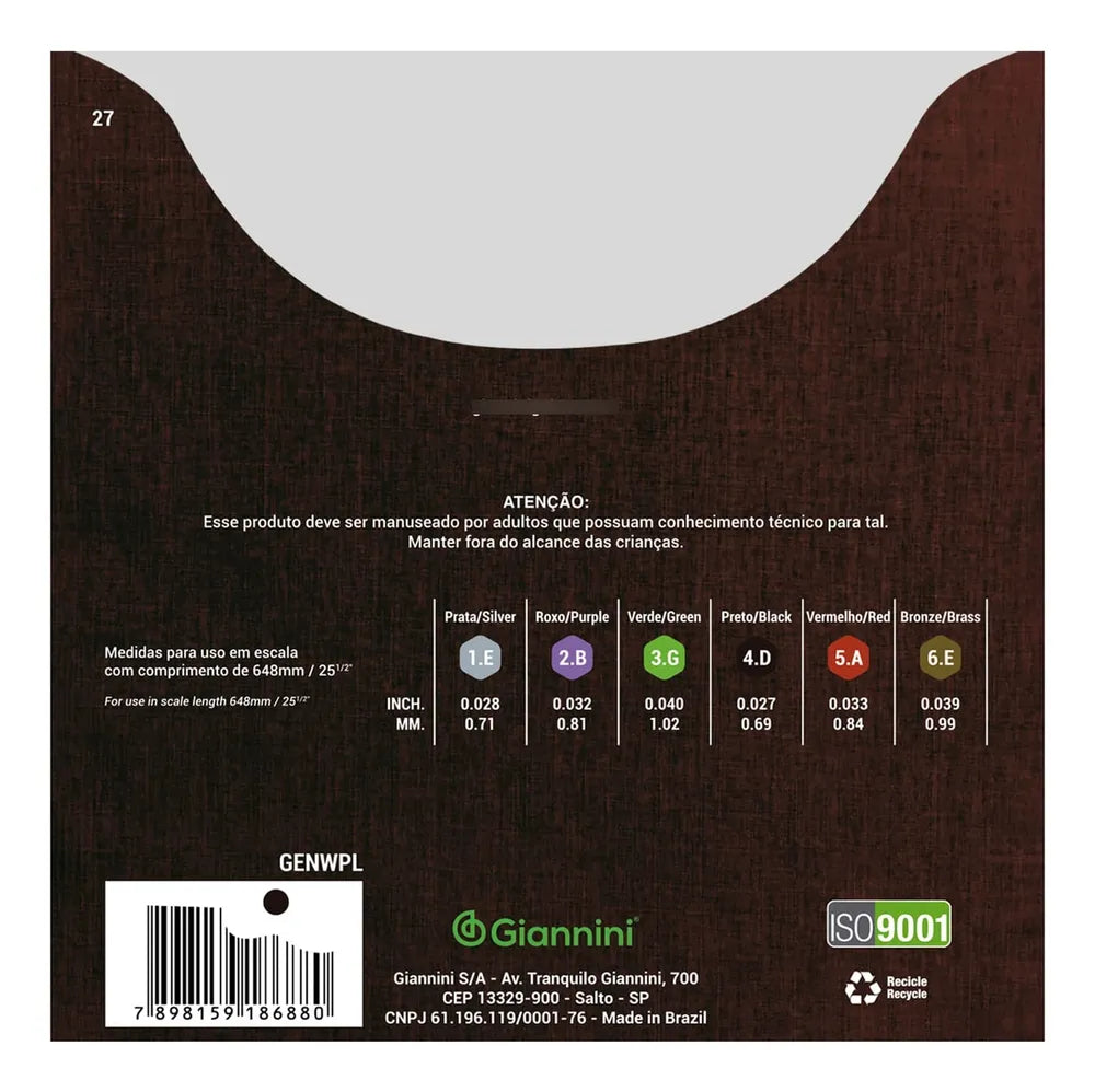 A série Clássico é indicada para quem aprecia um som puro e cristalino no seu instrumento com encordoamento náilon. Revestidas com Bronze 65/35, a Giannini Clássico GENWPL é indicada para quem gosta de uma corda com um toque mais leve.