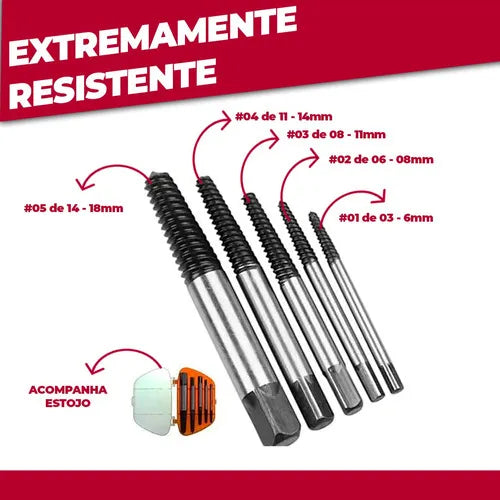 Feito de aço de alta qualidade, este extrator de parafusos é resistente e durável, garantindo um desempenho confiável e de longa duração. O design inteligente permite que você remova parafusos quebrados com facilidade, sem danificar a peça de trabalho.