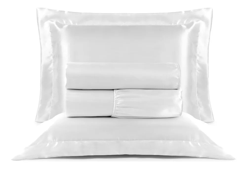 Branco - Transforme seu quarto em um verdadeiro refúgio de conforto e elegância com o Jogo de Lençol Cetim Casal Padrão 4 Peças Toque de Seda. Composto por 100% poliéster, este jogo de lençóis oferece um toque suave e sedoso, ideal para quem busca qualidade e bem-estar durante o sono. A linha Cetim Charmousse, garante durabilidade e resistência, proporcionando uma experiência de descanso inigualável.
