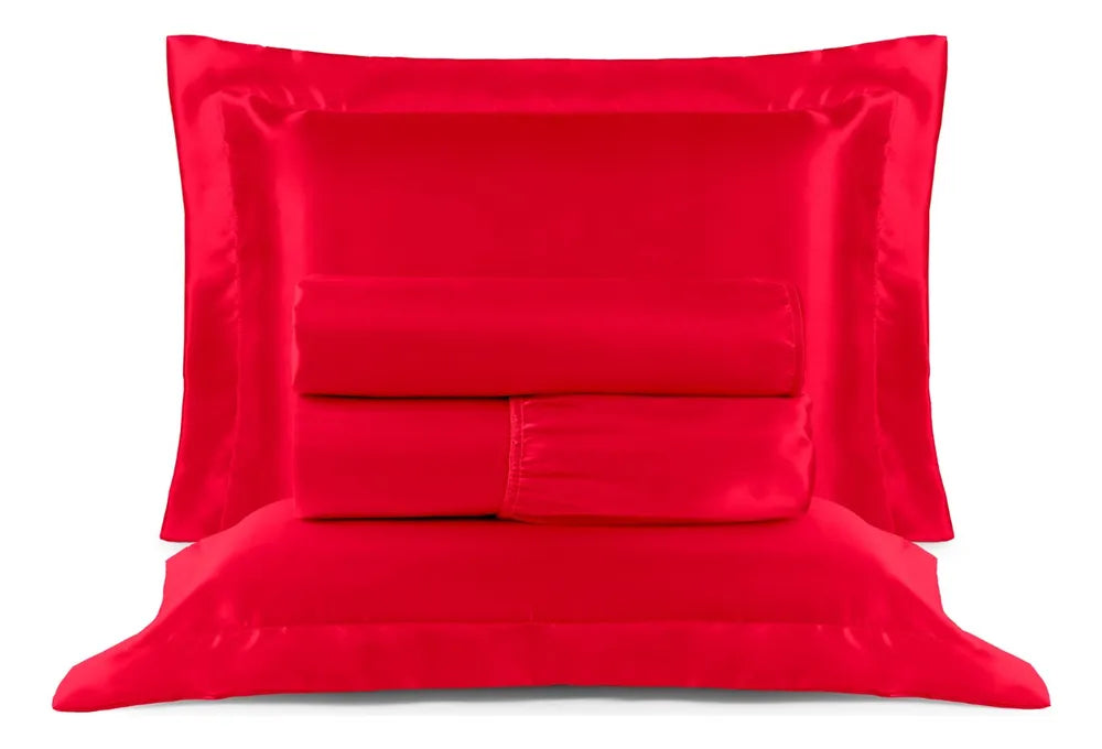 Vermelho - Transforme seu quarto em um verdadeiro refúgio de conforto e elegância com o Jogo de Lençol Cetim Casal Padrão 4 Peças Toque de Seda. Composto por 100% poliéster, este jogo de lençóis oferece um toque suave e sedoso, ideal para quem busca qualidade e bem-estar durante o sono. A linha Cetim Charmousse, garante durabilidade e resistência, proporcionando uma experiência de descanso inigualável.