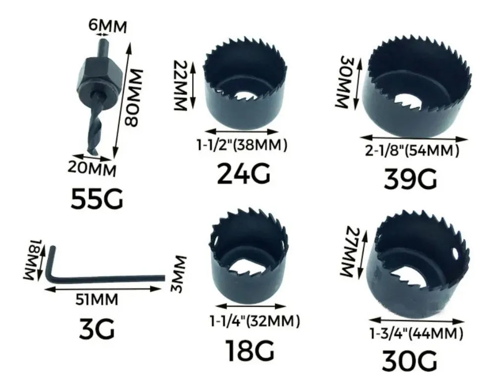 Apresentamos o Kit de Serra Copo para Madeira, uma ferramenta essencial para quem busca precisão e qualidade em cortes. Este kit é compatível com todas as furadeiras elétricas, garantindo um corte perfeito em madeiras, gesso e PVC. O conjunto inclui quatro copos de aço em tamanhos variados: 32mm, 38mm, 44mm e 54mm, permitindo versatilidade em seus projetos. Além disso, acompanha uma chave allen de 2mm e um suporte para serra copo com broca guia, facilitando o manuseio e a instalação. Fabricado em metal de alta qualidade, este produto é novo e sem validade, ideal para profissionais e entusiastas do DIY. Lembre-se de manusear com cuidado e manter fora do alcance de crianças para garantir a segurança durante o uso.