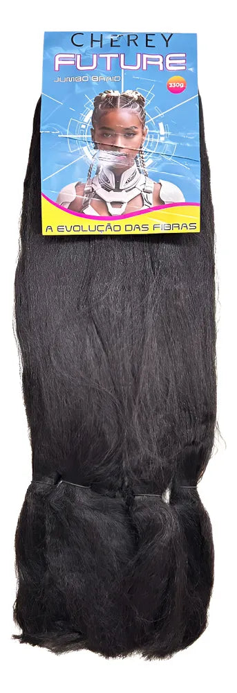 - 1 pacote com 330g de cabelo sintético tipo jumbo.