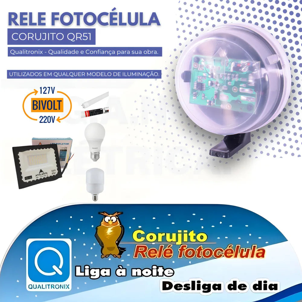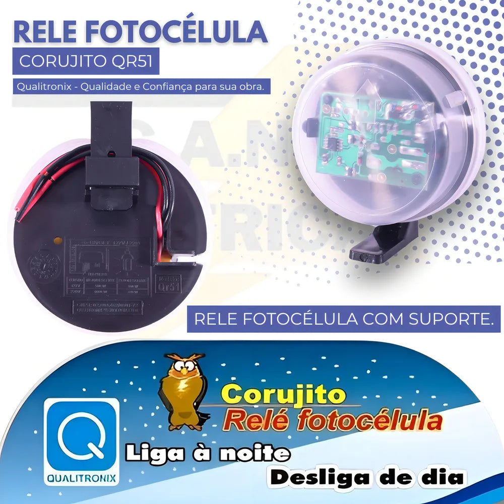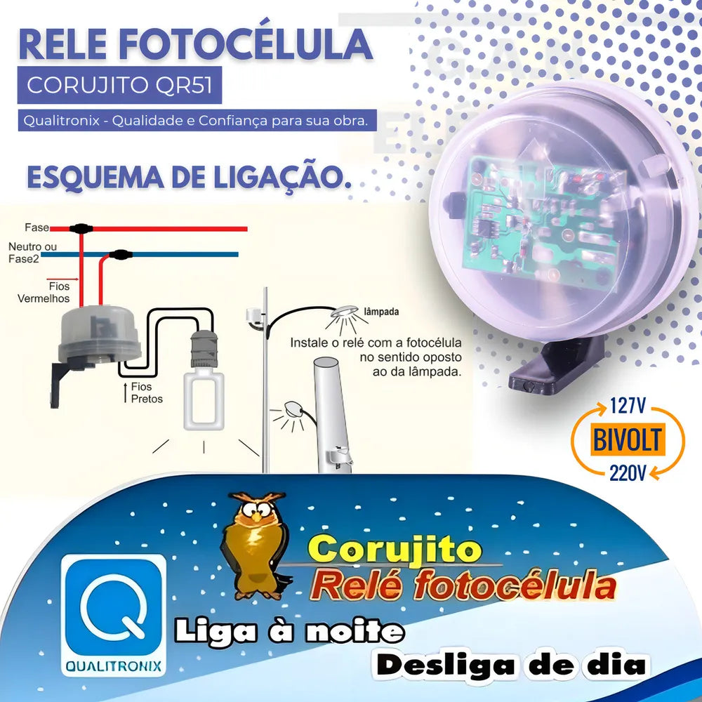 Um Relé Fotocélula da marca Qualitronix, de fácil instalação, que irá te auxiliar no dia a dia.