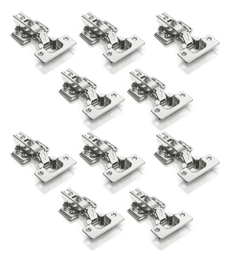 KIT COM 10 DOBRADIÇA COM AMORTECEDOR (PISTÃO) CALÇO FIXO 35MM RETA
