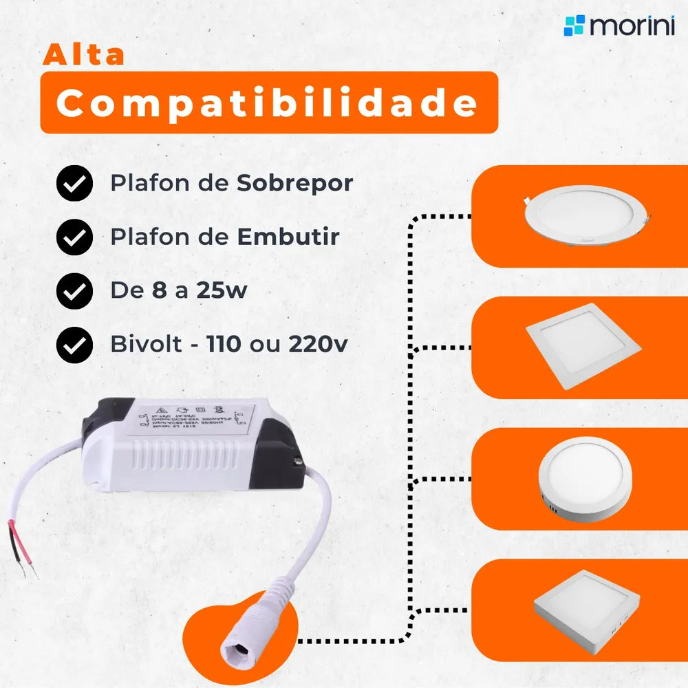 Compatível com luminárias de 8w, 12w, 14w, 16w, 18w, 20w, 22w, 24w e 25w