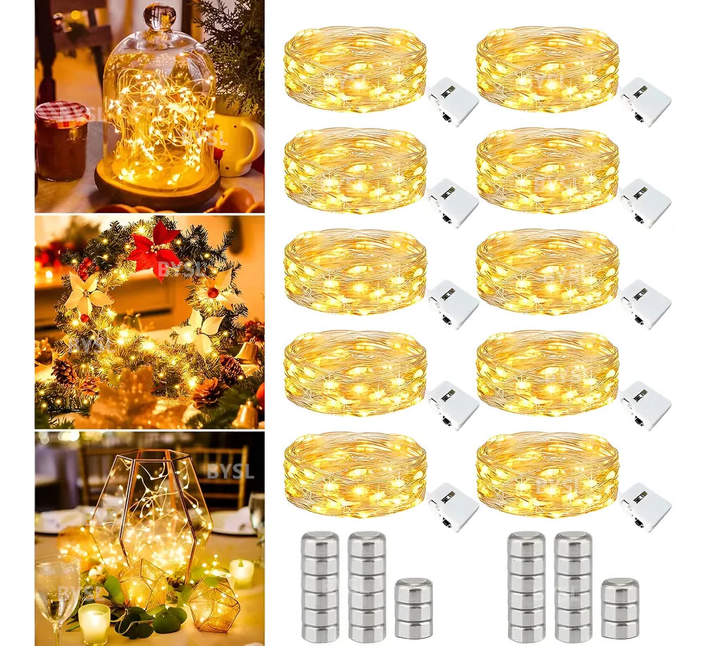 Pacote de 10, cada cordão de luzes tem 2 metros de comprimento e 20 LEDs.
