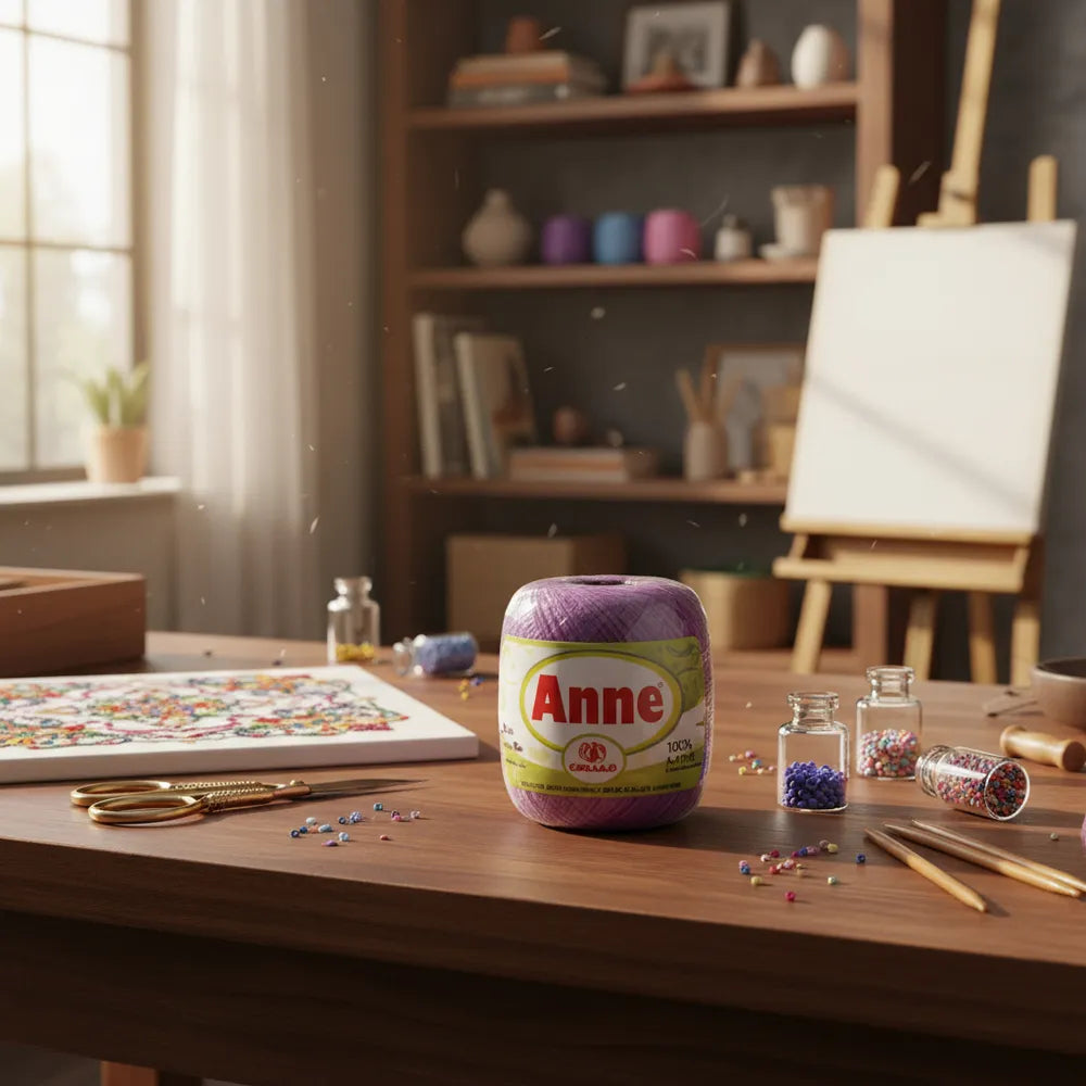 O fio Anne é um produto 100% algodão mercerizado, que proporciona acabamento cintilante e toque macio a sua confecção. São 83 cores vivas para criar peças incríveis, com espessura ideal para confecções vazadas para o verão. Quando trabalhado com pontos mais fechados para meia estação e inverno, mantém a sua peça leve e suave. Na decoração é indicado principalmente para confecção de trilhos de mesa, toalhinhas decorativas, barrados em toalhas e panos de copa, pois possui um excelente rendimento.