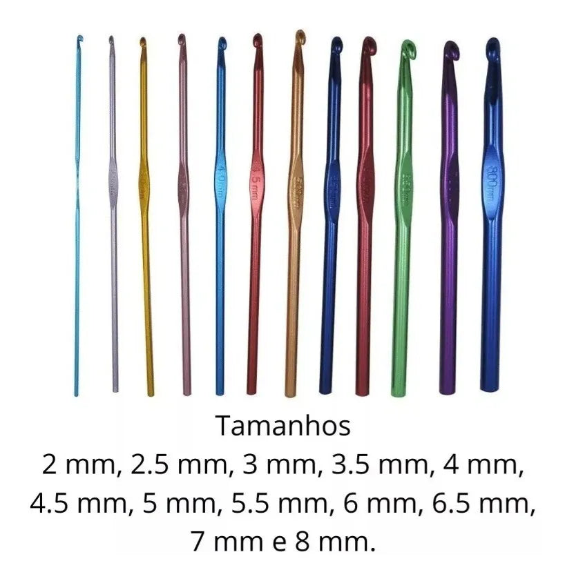 Apresentamos o Kit 12 Agulhas Crochê Alumínio De 2mm A 8mm da marca Maclen, um conjunto essencial para todos os amantes de crochê. Este kit é composto por 12 agulhas de crochê de alumínio, cada uma com um diâmetro diferente, variando de 2mm a 8mm, para atender a todas as suas necessidades de crochê.