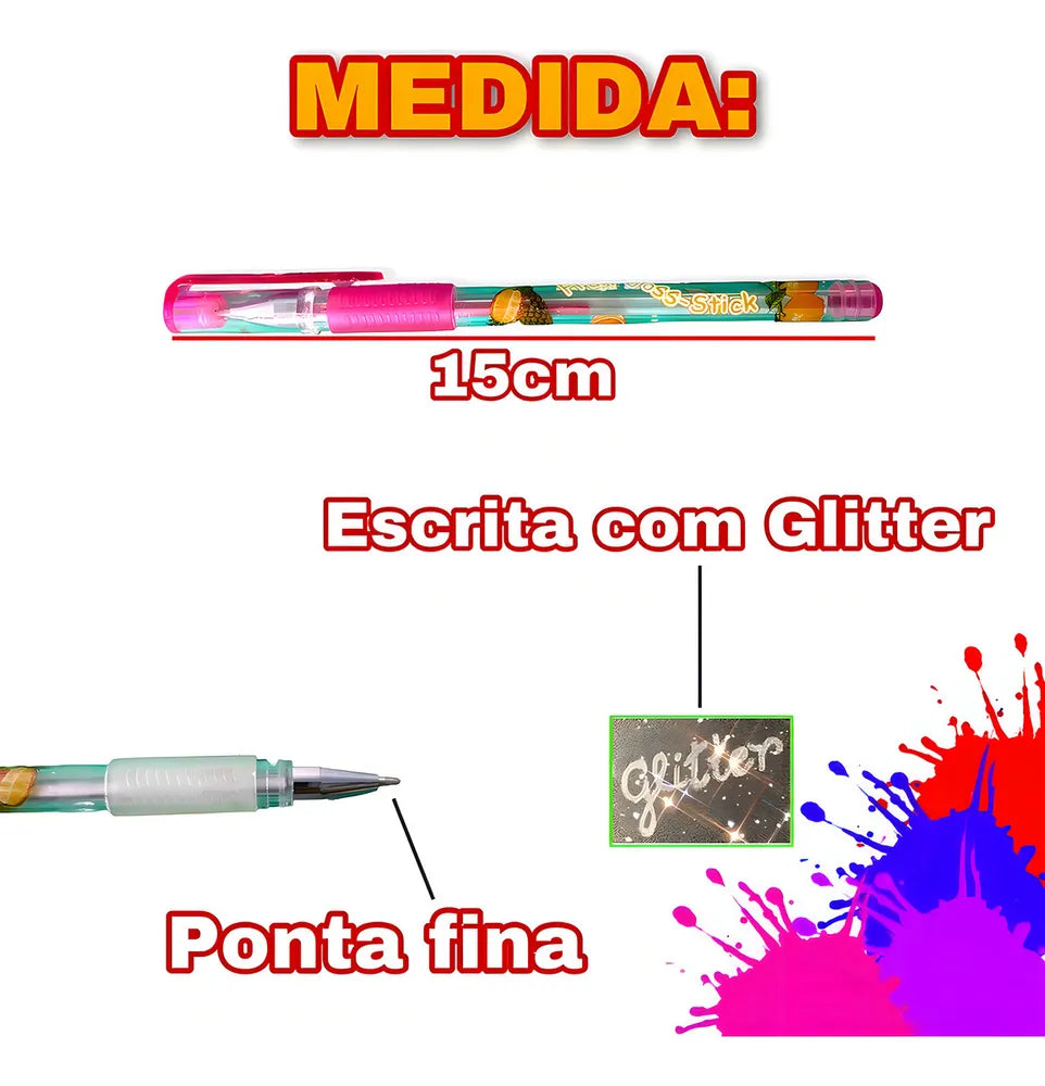 Descubra o incrível 'Kit 12 Canetas Gel Coloridas Perfumadas Glitter Neon Pastel', ideal para dar vida a suas criações artísticas! Este conjunto contém 12 canetas gel de cores vibrantes, cada uma com uma ponta média de 1mm, proporcionando uma largura de linha de 0,8mm para uma escrita suave e precisa. As canetas possuem um design ergonômico com capa emborrachada, permitindo que você escreva e pinte por longos períodos sem desconforto. O estojo transparente facilita o transporte e a organização, enquanto a tampa e o plug da mesma cor da tinta garantem um visual harmonioso. Com uma bola de tungstênio, cada caneta oferece uma esfera perfeita e resistente, ideal para uso diário. Este produto é novo e feito de materiais de alta qualidade, como plástico e metal, tornando-o uma excelente escolha para artistas e estudantes.