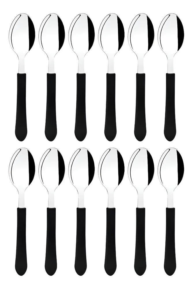 12 - Colheres de Mesa Tramontina Leme Inox Cabo Preto.