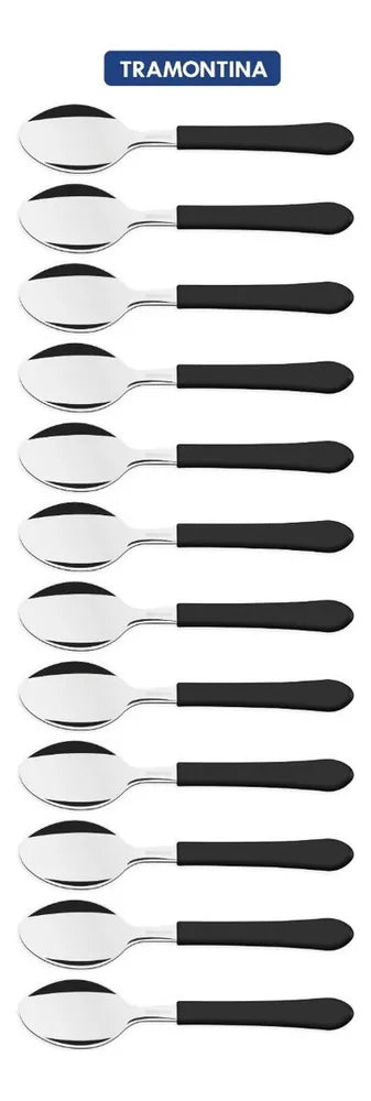 Kit 12 Colher de Mesa Tramontina Leme Inox Cabo Preto