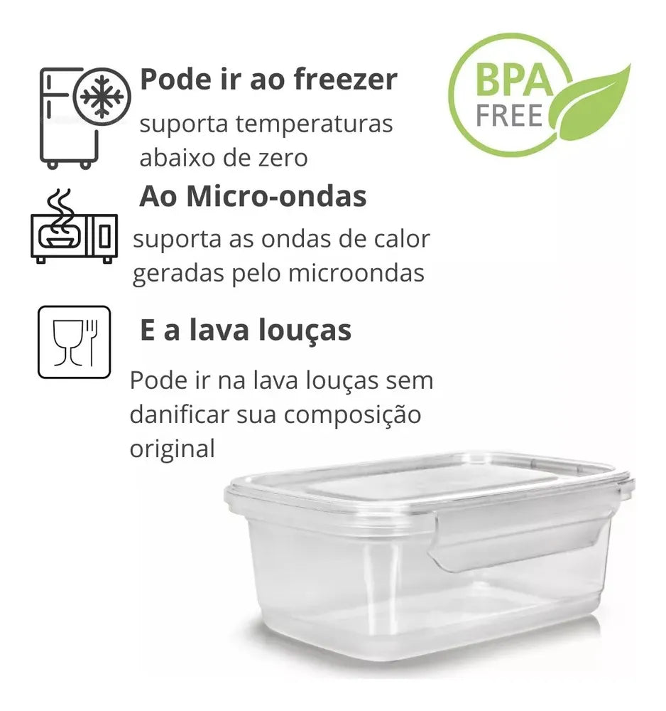 Fabricado em material plástico de alta qualidade, livre de BPA, ideal para o armazenamento de seu alimento seja ele qual for.