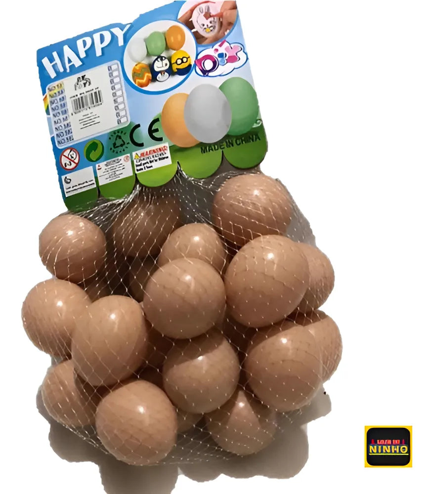 Os ovos são da mesma cor do ovo caipira, sendo idêntico a eles em tamanho, cor e formato. O peso que é diferente pois eles são ocos, sendo assim, mais leves. Eles não amassam facilmente e possuem mesmo tamanho que um ovo real. Os ovos não abrem.