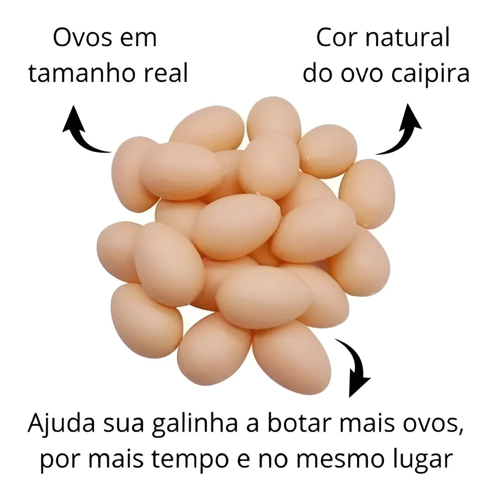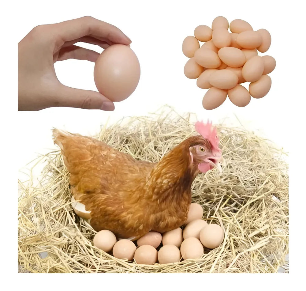Sua galinha está precisando produzir mais ovos? Esse produto é perfeito para sua galinha para indez, que é um estímulo para que ela volte a pôr ovos naquele mesmo lugar. Garanta sua galinha mais feliz e produtiva com uma dúzia de ovos de mentira.