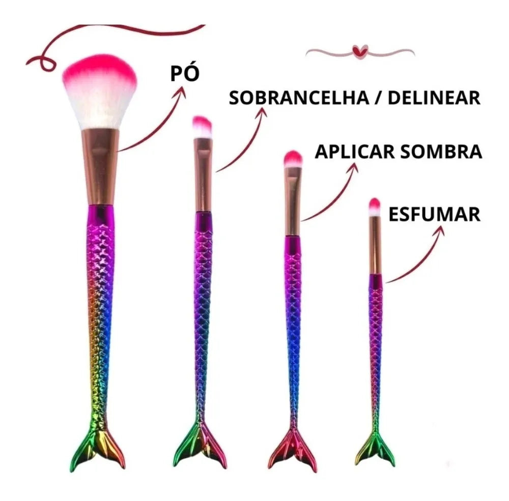 Pensando na praticidade e qualidade de suas make-ups, anunciamos o Kit com 4 pincéis variados de Sereia. Uma nova tendência muito utilizada por blogueiras, fashionistas e profissionais da área da beleza.