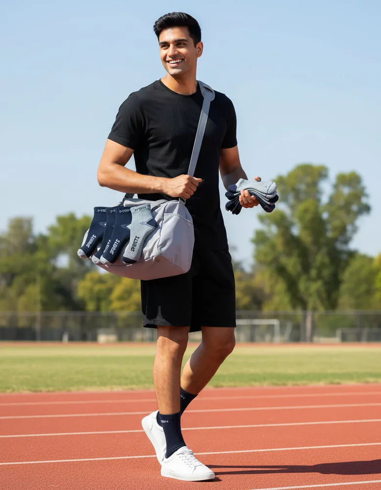 Desenhadas para atividades esportivas, as meias possuem um tipo de ponta reforçada, garantindo durabilidade e resistência em cada pisada. Seu comprimento curto torna-as versáteis, podendo ser usadas em diversas ocasiões, desde treinos mais intensos até composições casuais do dia a dia.