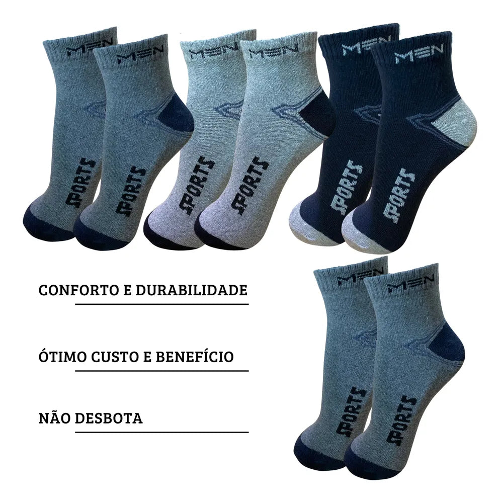 Cano curto adornado em cor contrastante. Sua costura é reforçada na ponteira e no calcanhar, garantindo conforto o dia todo. Excelente custo benefício na compra do kit.