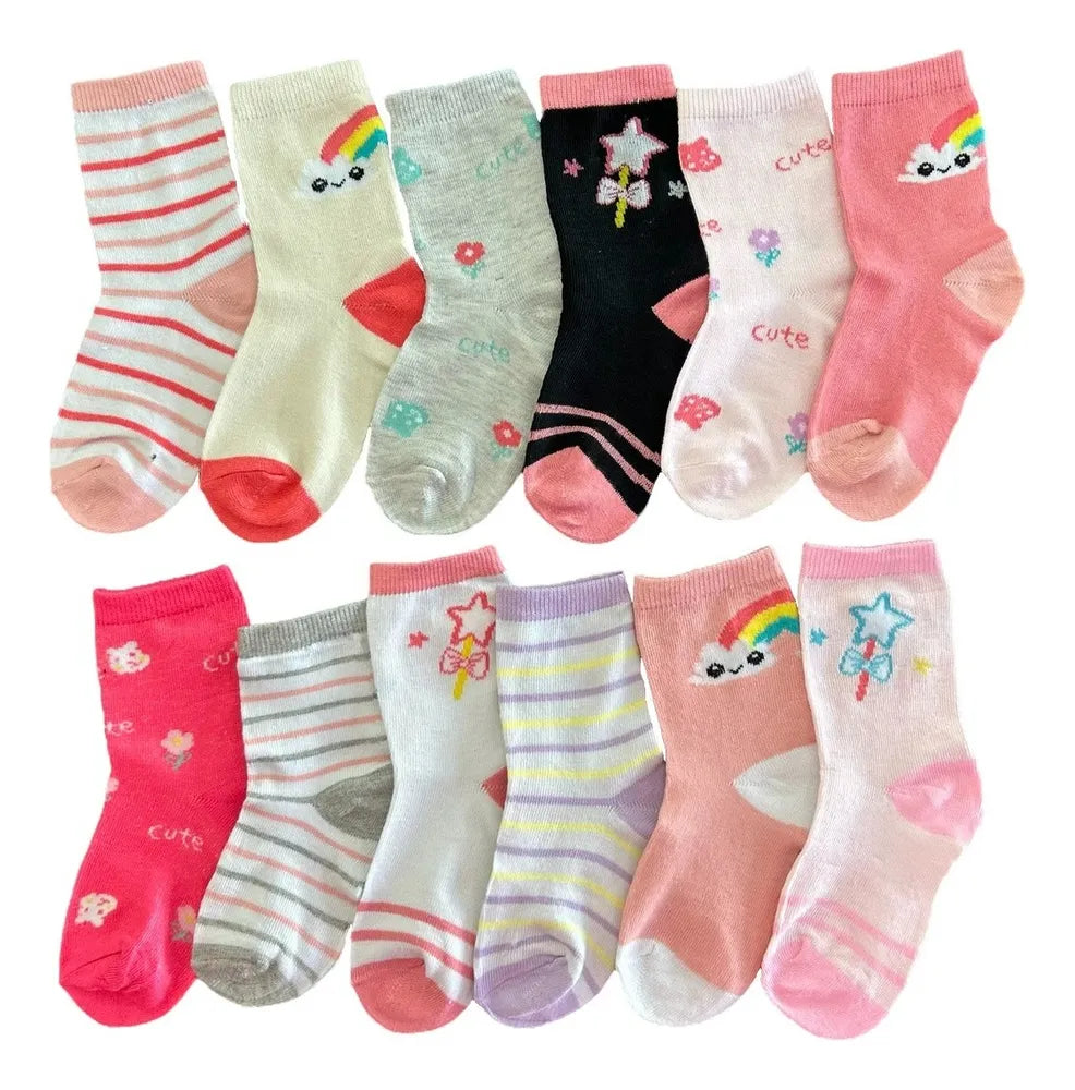 Variadas feminino 8 a 10 Anos - Kit com 12 Pares de Meias Infantil Feminino