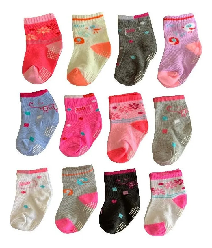 Variadas feminino 6 a 8 Anos - Kit com 12 Pares de Meias Infantil Feminino