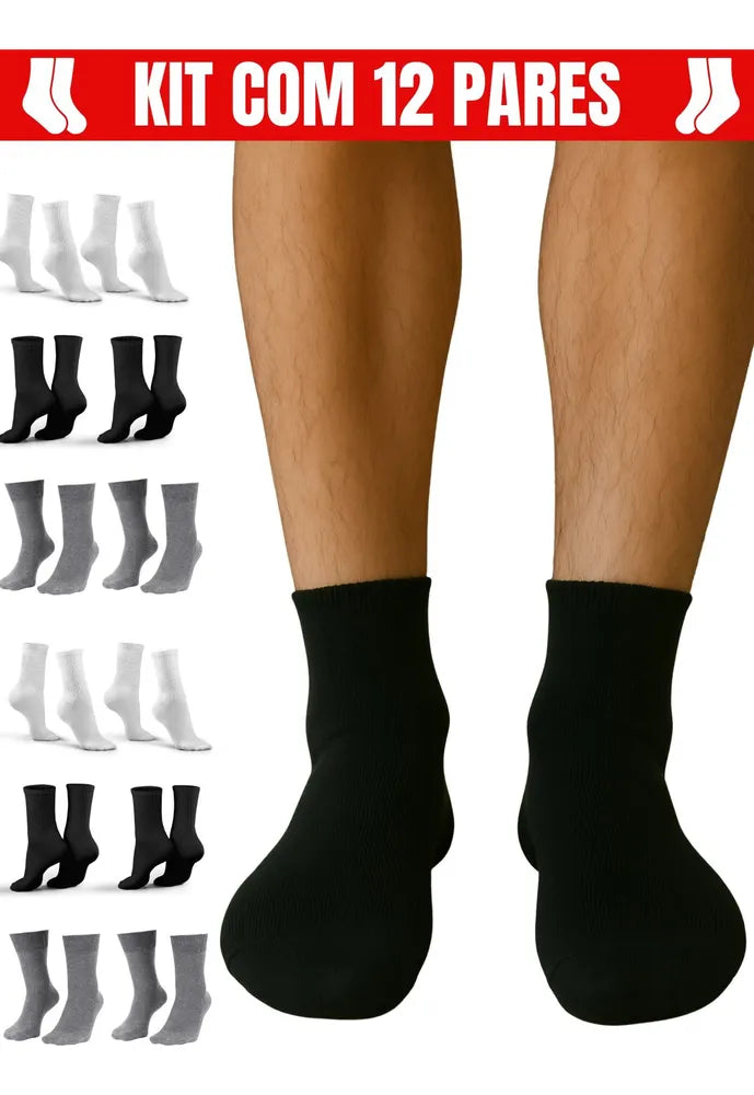 Kit Econômico: Com 12 pares de meias incluídos no kit, você terá meias suficientes para todas as suas necessidades diárias, garantindo praticidade e economia.