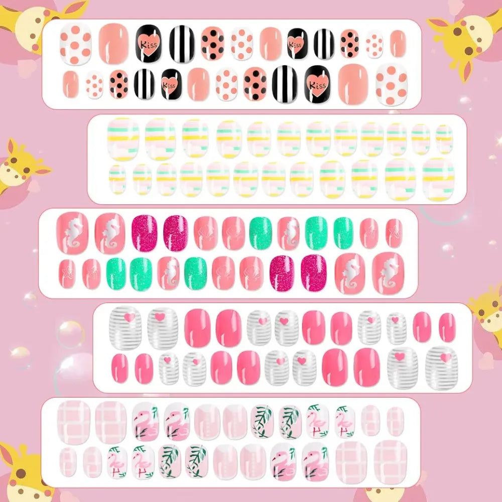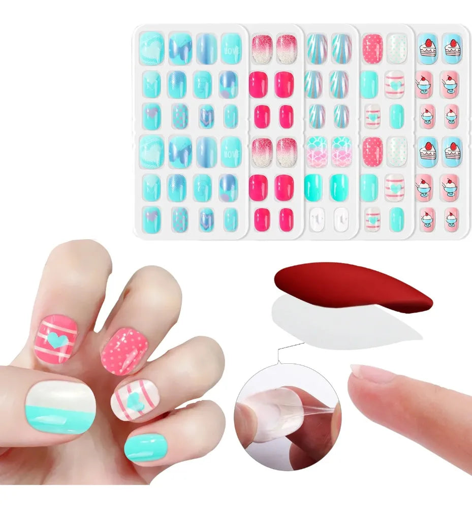 Kit 120 Unhas Postiças Infantil Kids Decoradas Autocolante