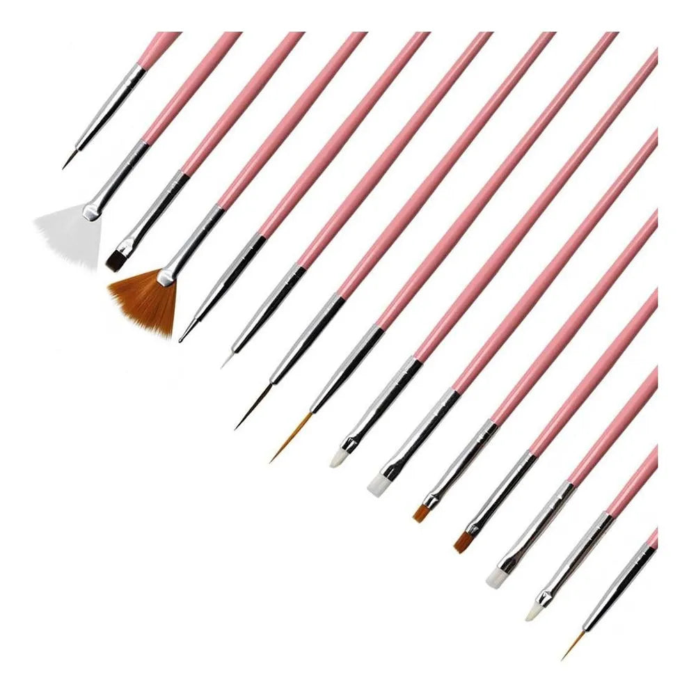 01 - Kit com 15 Pincéis para Decoração de Unhas
