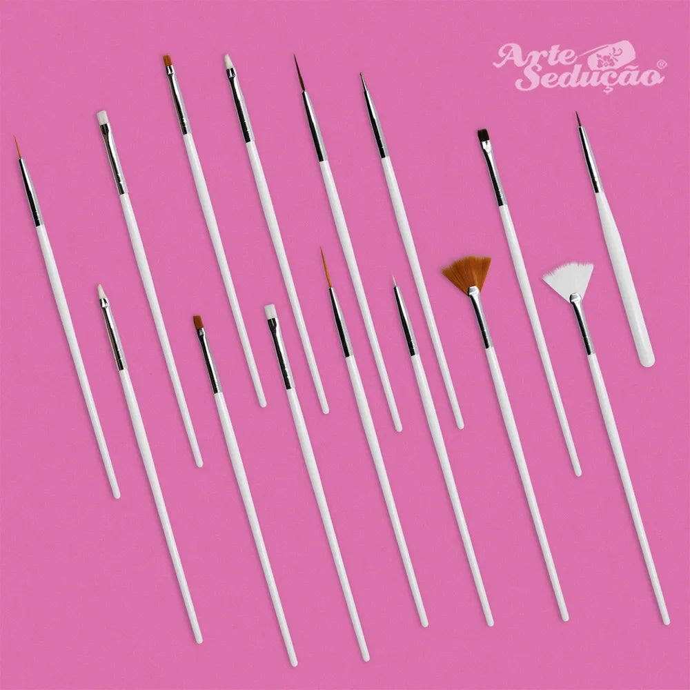 01 - Kit com 15 Pincéis para Decoração de Unhas, Branco