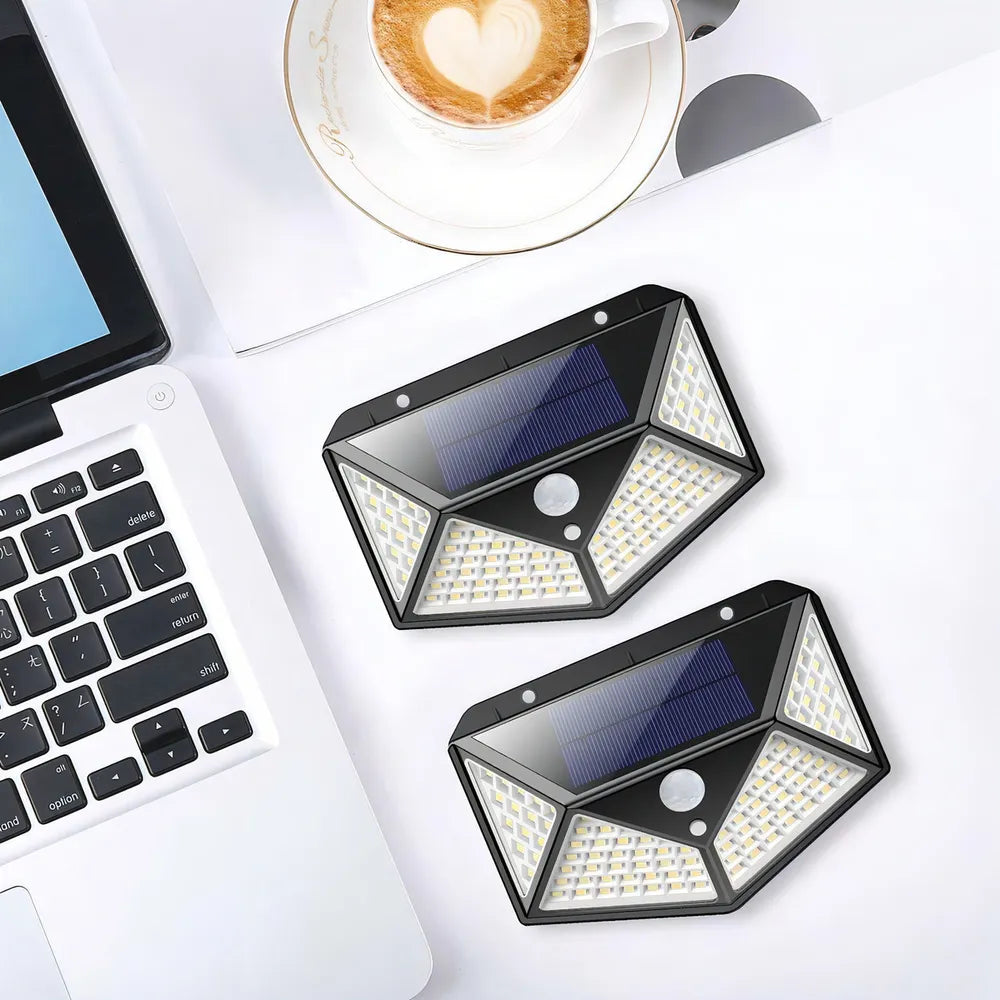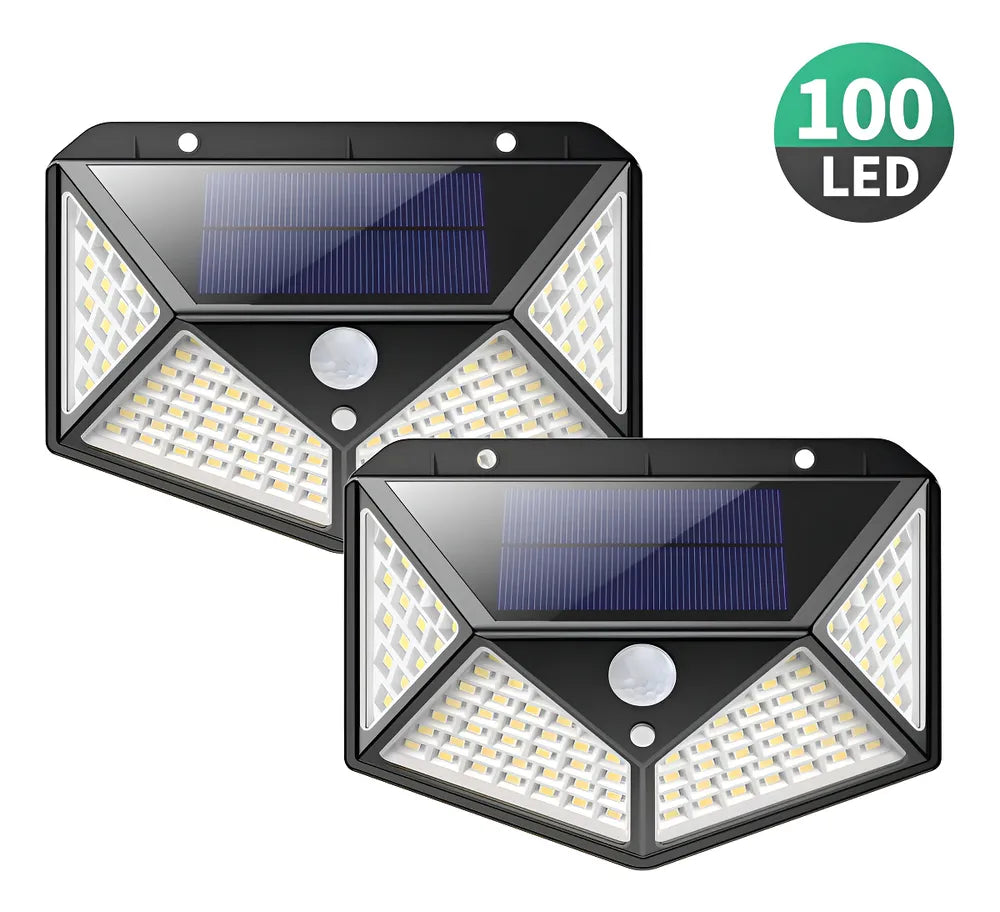 Luminária Solar Super 4 Placas de 100 Leds com 3 Modos de Operação de Parede