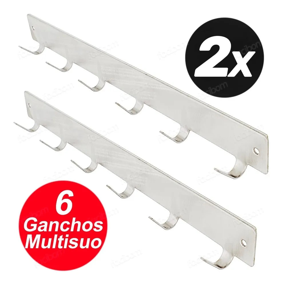 2 - Cabide Com 6 Ganchos Multiuso para Parede