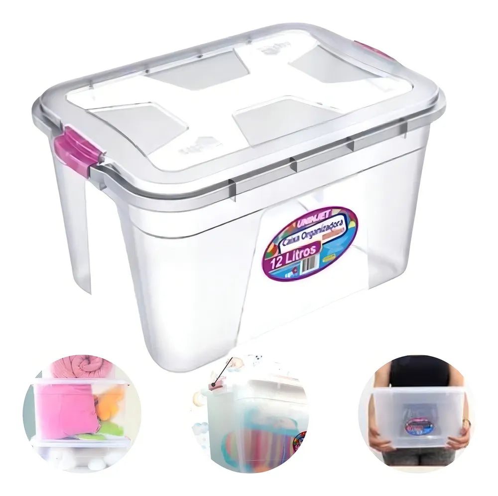 Caixa Organizadora Multiuso Transparente 12 Litros Com Tampa