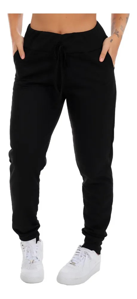 Cinza+Chumbo P - A calça de moletom feminina com bolso é uma peça super versátil, que combina com vários looks e momentos. Perfeita para looks casuais, você também pode usar para malhar nos dias mais frios. A calça possui um cós alto (largo), com elástico embutido e um detalhe para amarrar. O tecido é extremamente confortável, dando mobilidade para o seu dia-a-dia, além de poder ser usado em todas as estações do ano, possuindo um ótimo caimento no corpo.