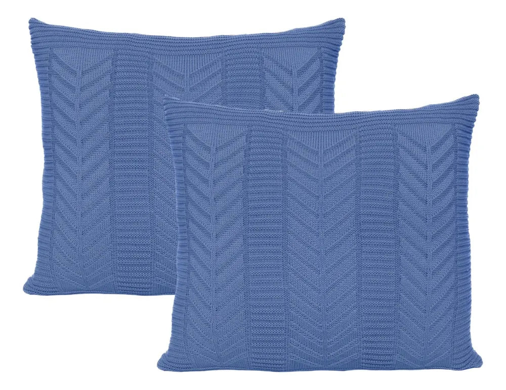 Azul jeans - Kit 2 Capas de Almofadas Tricot Decorativa Sofá Cama Links