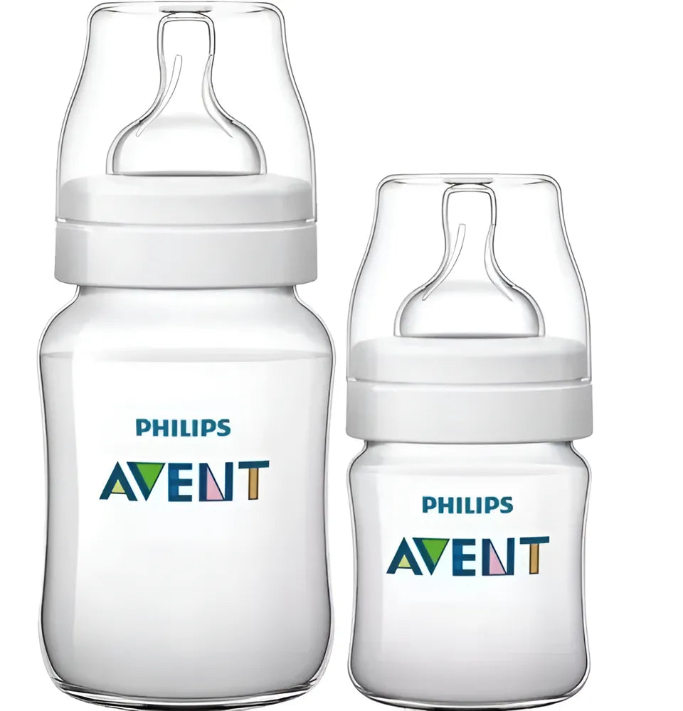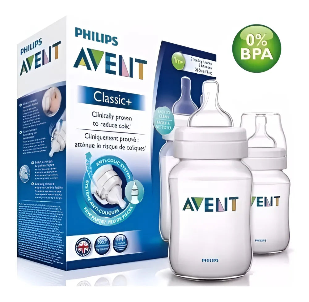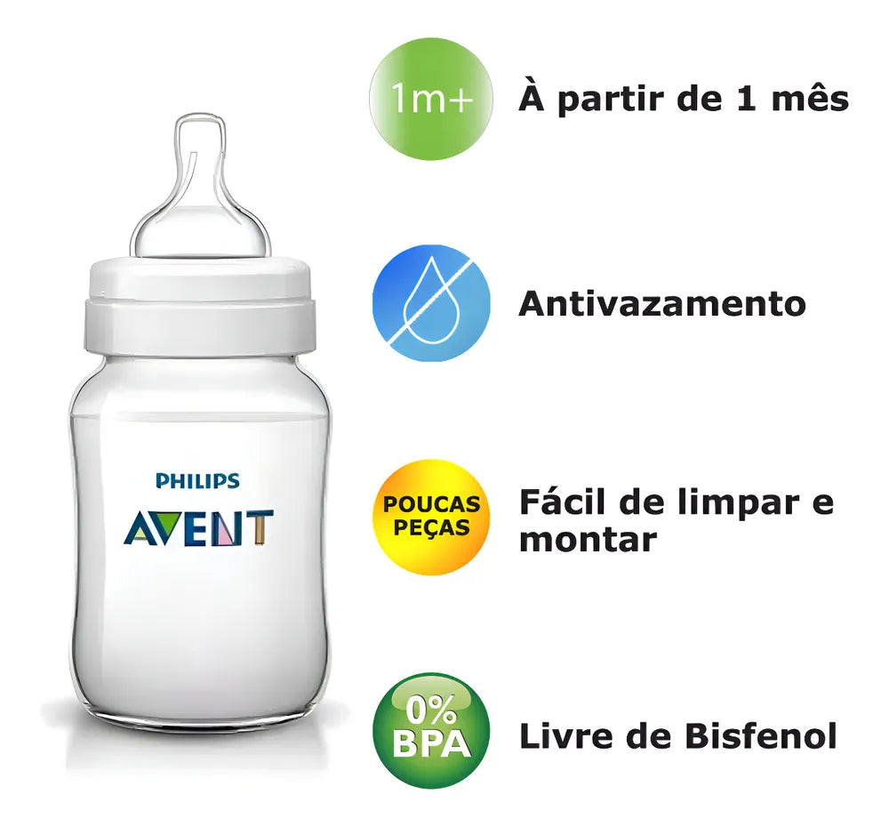 As Mamadeiras Clássica da Avent possuem bico em silicone, são antivazamento e totalmente livres de BPA.