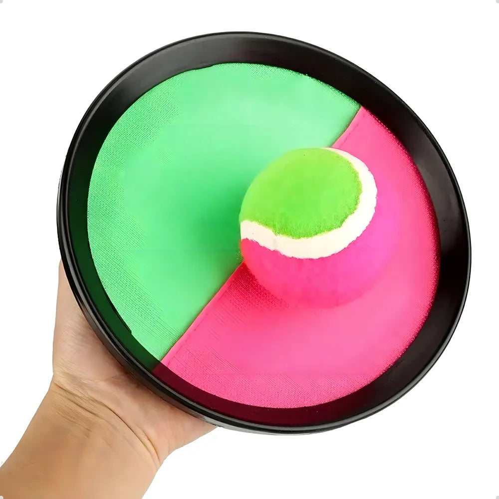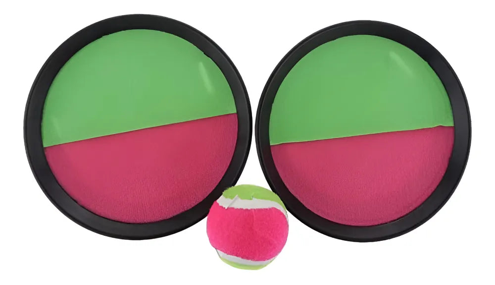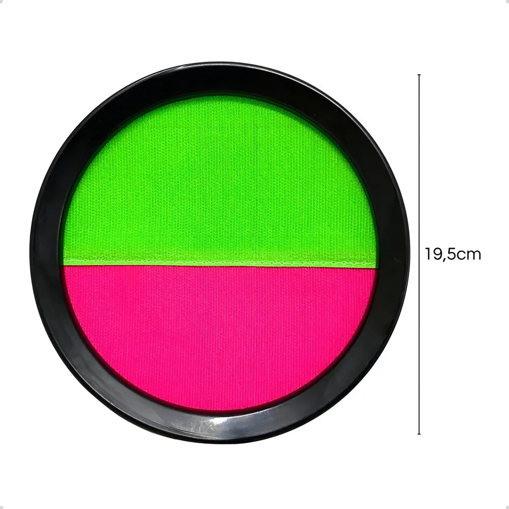 Kit 2 Raquetes Velcro + Bola Esporte Infantil Pais Filhos' é composto por 2 Raquetes de Plástico com Velcro e 1 Bolinha Colorida, ideal para jogar ao ar livre.