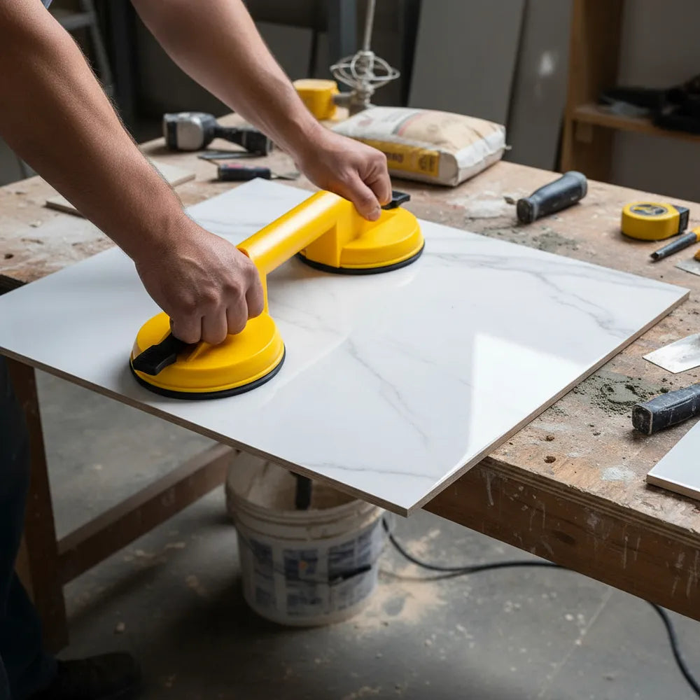 Ventosas Dupla a vácuo, ideais para você que procura facilidade e precisão ao colocar peças de pisos cerâmicos, porcelanatos, mármores e vidros em geral.