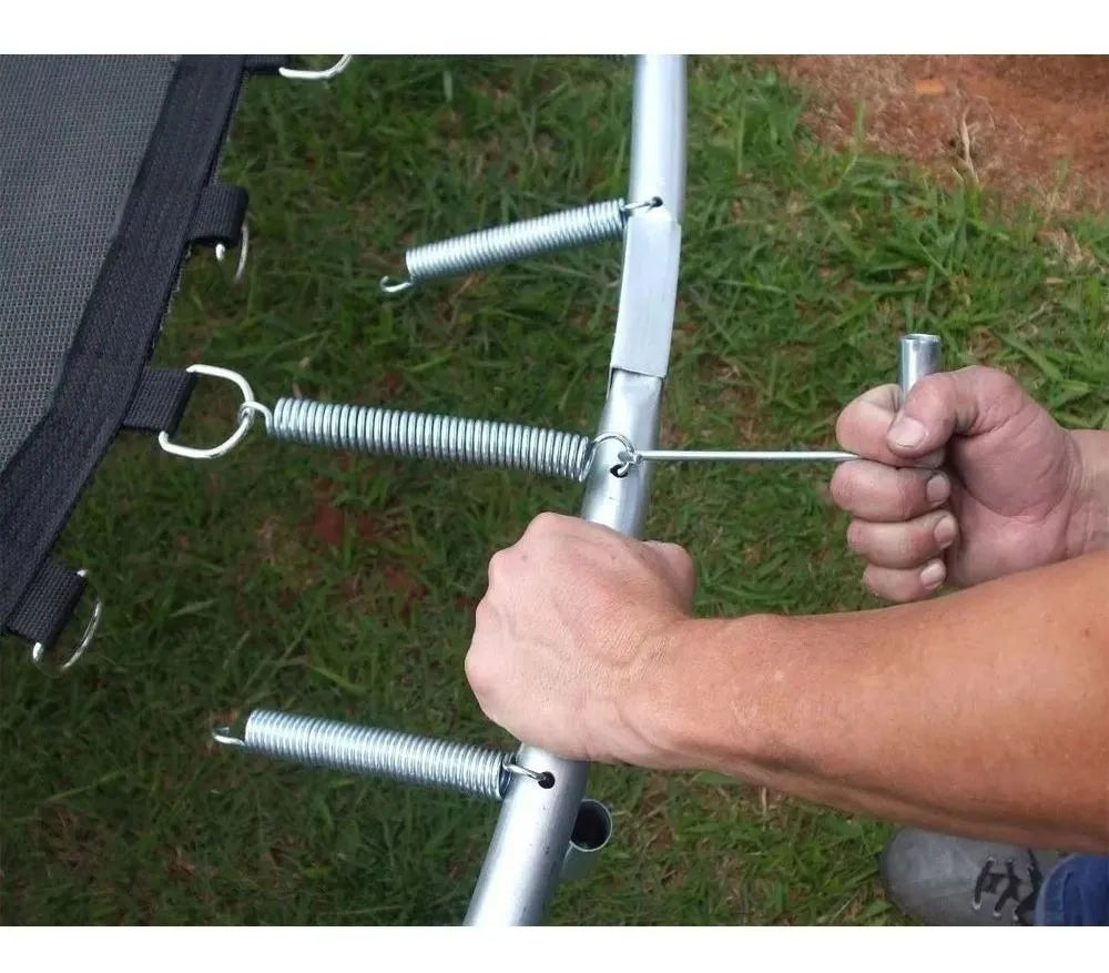 Quem tem e trabalha com camas elásticas sabe da importância de proteger e aumentar a durabilidade de seu equipamento. Para renovar a sustentação da lona da sua cama elástica, é preciso trocar as molas antigas por novas. A mola de 13 cm para cama elástica serve para encaixar a lona na estrutura do pula-pula, fazendo com que a lona fique firme para suportar os impactos gerados pelo salto.