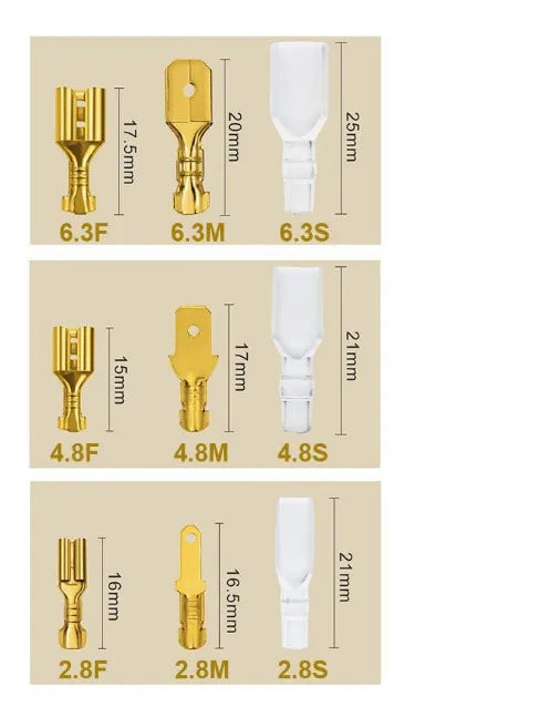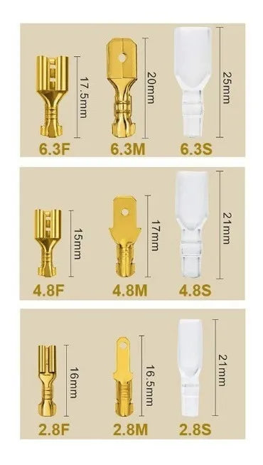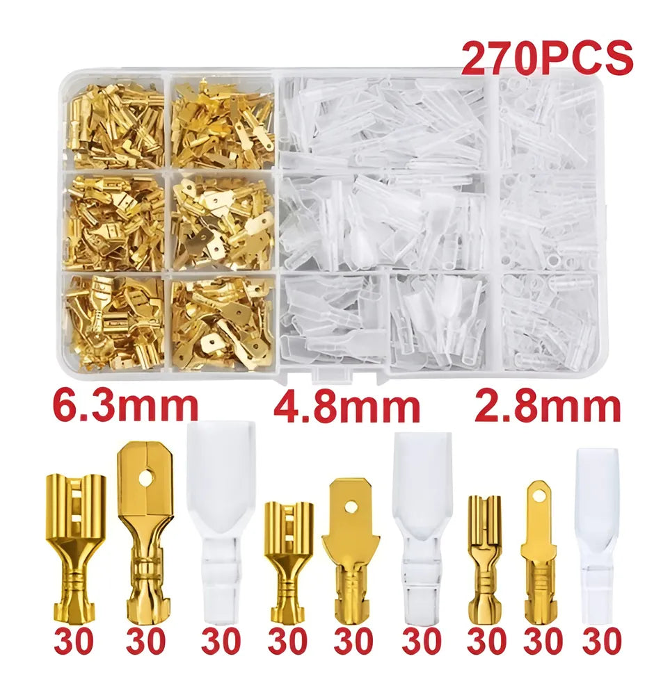 O Kit 270 Conectores Terminais Plugs Elétricos Tipo Faston é a solução ideal para suas necessidades de conexão elétrica. Com um total de 270 peças, incluindo conectores fêmea e macho em três tamanhos distintos (2.8mm, 4.8mm e 6.3mm), este conjunto é completo e versátil. Cada conjunto de 30 peças vem com bainhas de isolamento, proporcionando segurança adicional nas suas instalações elétricas. Fabricados pela Geober, os conectores possuem um revestimento de latão niquelado, garantindo durabilidade e resistência à corrosão. Seu design mini plug é fácil de instalar e conveniente de usar, tornando esses conectores perfeitos para diversos projetos. Aproveite a qualidade e eficiência do Kit de Conectores Elétricos Fêmea/Macho e eleve suas montagens a um novo nível de profissionalismo.