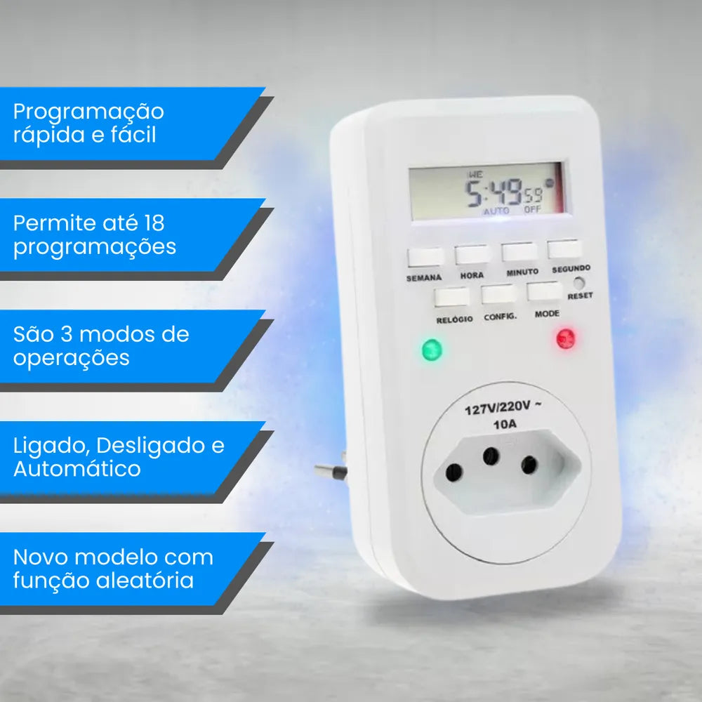 Funciona mesmo sem energia =>> Bateria interna mantém a programação ativa em quedas de luz.