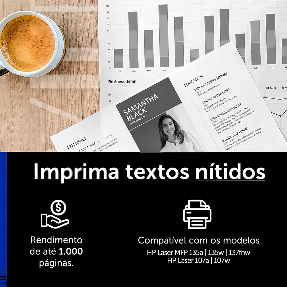 Rendimento de 1.000 páginas, considerando 5% de cobertura no Papel A4.