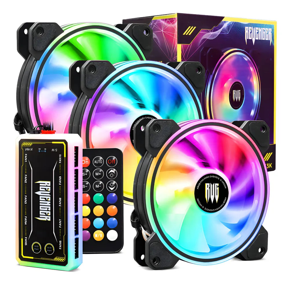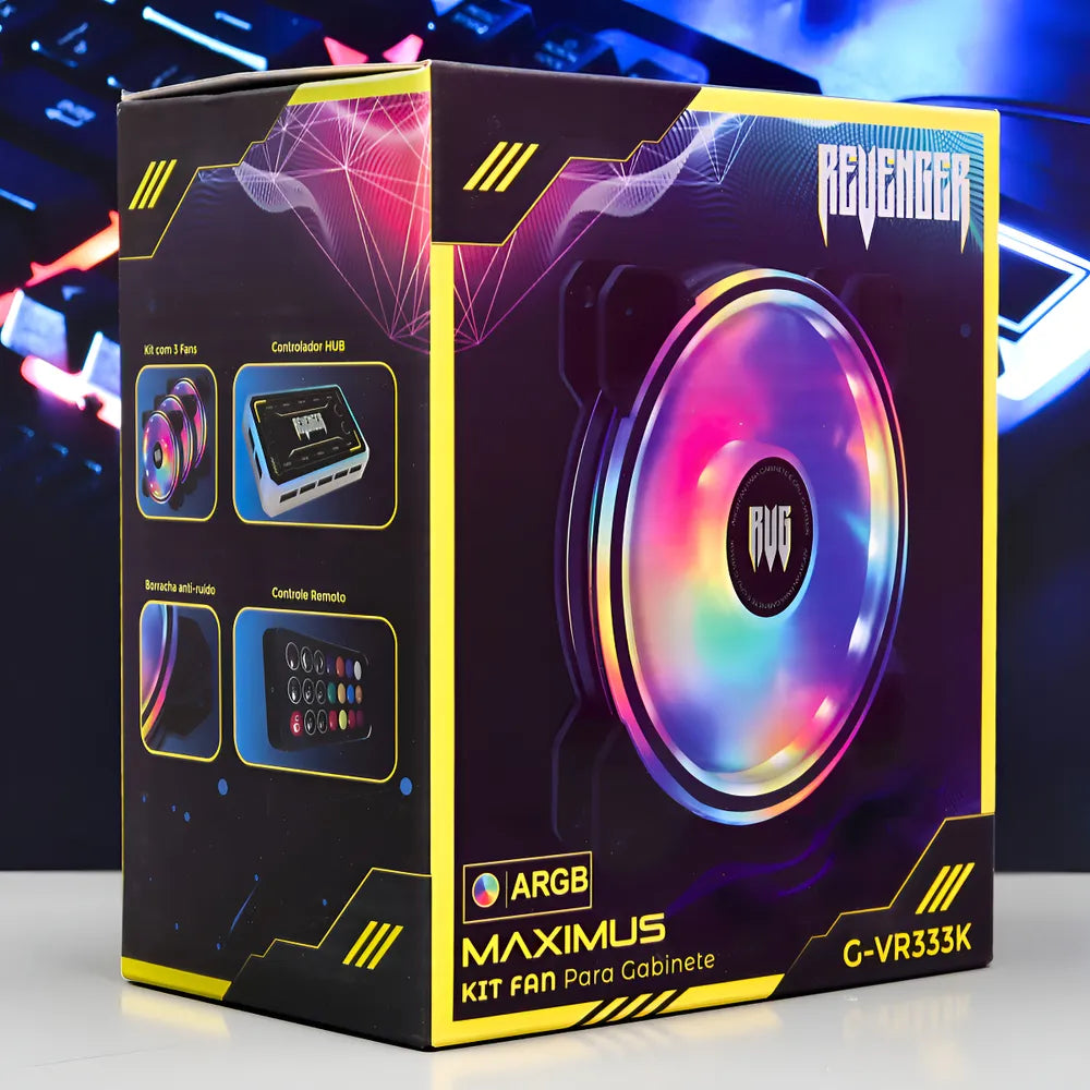 Kit Revenger ARGB com efeito de luz ARGB e 8 LEDs RGB por fan, seu gabinete brilhará com cores vibrantes.