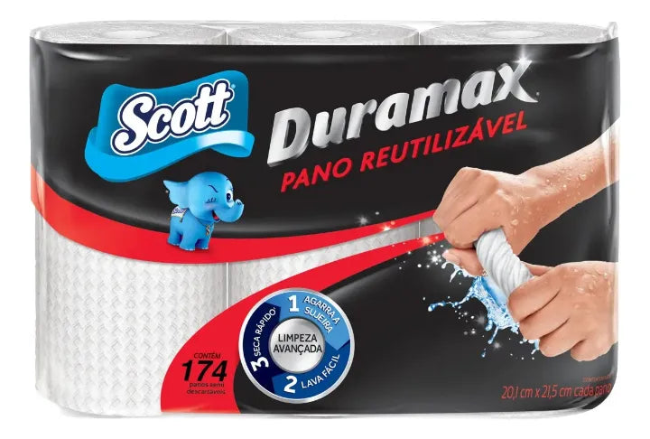 Descubra a praticidade e eficiência do Pano Reutilizável Multiuso Scott Duramax, ideal para diversas tarefas de limpeza. Com dimensões de 21,5 cm x 20,1 cm, cada pano é projetado para ser lavado e reutilizado, garantindo uma solução sustentável e econômica. Sua secagem rápida e a ausência de fiapos tornam-no perfeito para superfícies delicadas, enquanto sua superabsorção e resistência superam as tradicionais toalhas de papel. Este produto é fabricado com uma combinação de celulose e polipropileno, oferecendo durabilidade e eficácia. A embalagem contém 3 rolos, totalizando 174 panos prontos para uso. Aproveite a limpeza avançada e a praticidade que o Scott Duramax proporciona em seu dia a dia!