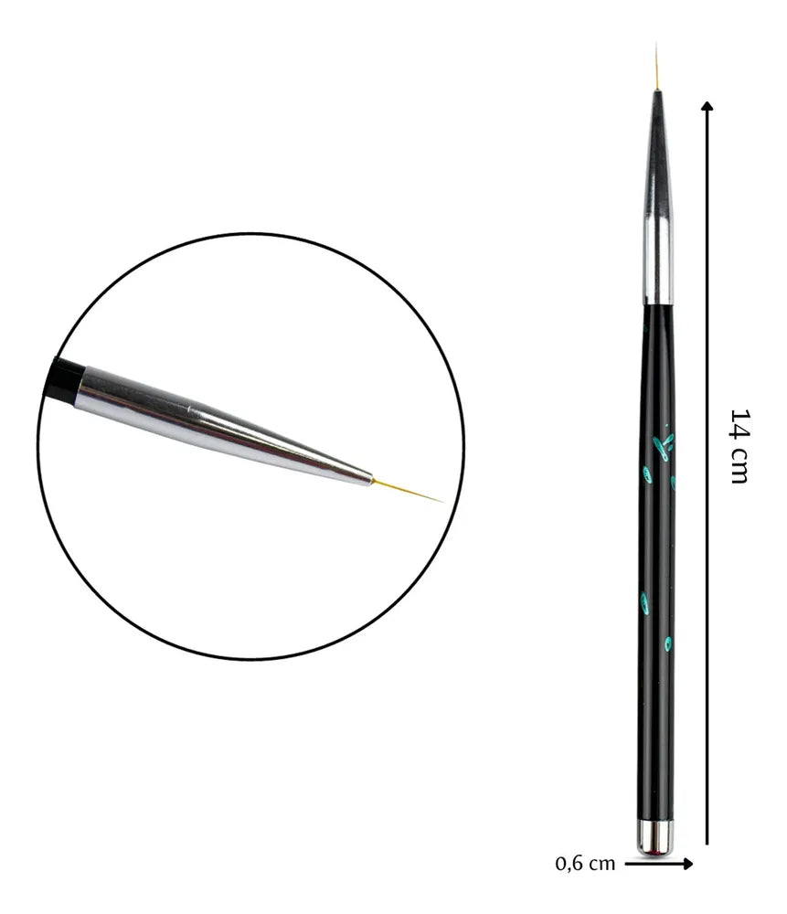 Pincéis para Nail Art finos são ferramentas essenciais para criar designs detalhados e precisos em unhas. Possui três tipos de tamanhos de cerdas, permitindo a criação de unhas com variedade de técnicas e estilos.