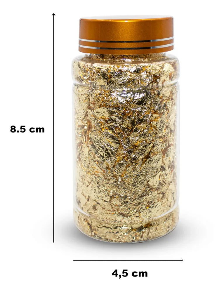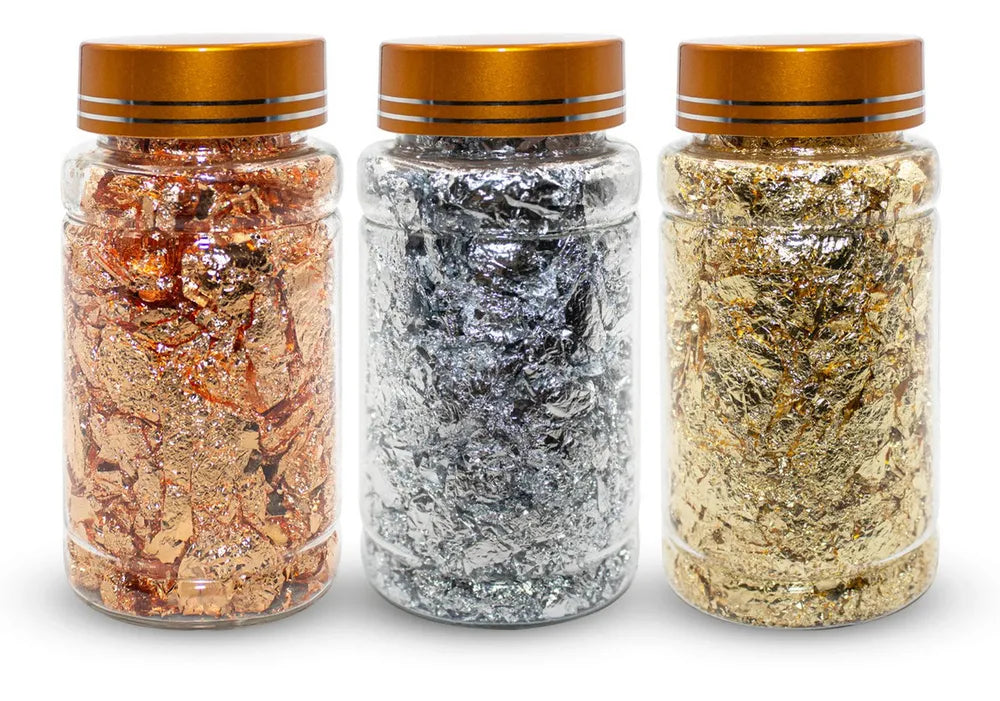 03 - Potes de Folhas de Ouro para Decoração de Unhas nas cores Ouro, Prata e Bronze