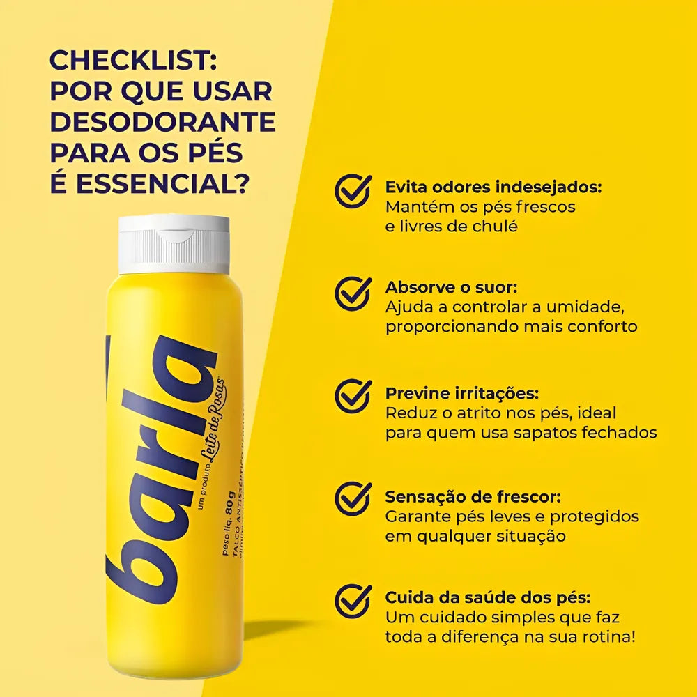 Apresentamos o Kit Talco Barla com 03 unidades, uma solução perfeita para quem busca conforto e frescor para os pés. Este talco antisséptico foi especialmente desenvolvido para normalizar a transpiração, garantindo que seus pés permaneçam secos e perfumados ao longo do dia. Sua fórmula exclusiva é dermatologicamente testada e hipoalergênica, proporcionando segurança e suavidade, mesmo para peles sensíveis. Embora não seja apto para bebês, é ideal para adultos que desejam uma sensação de limpeza e frescor. O talco vem em um prático frasco, facilitando a aplicação. Com o Kit 3 Talco Leite de Rosas Barla Perfumado, você desfrutará de uma experiência única de cuidado e bem-estar, mantendo seus pés sempre agradáveis e protegidos. Não perca a oportunidade de experimentar essa linha de produtos de qualidade superior da marca Barla!