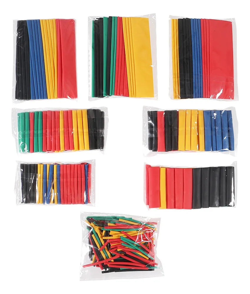 Cada tamanho de termo retrátil é embalado individualmente em embalagens plásticas, para facilitar o uso e armazenagem.